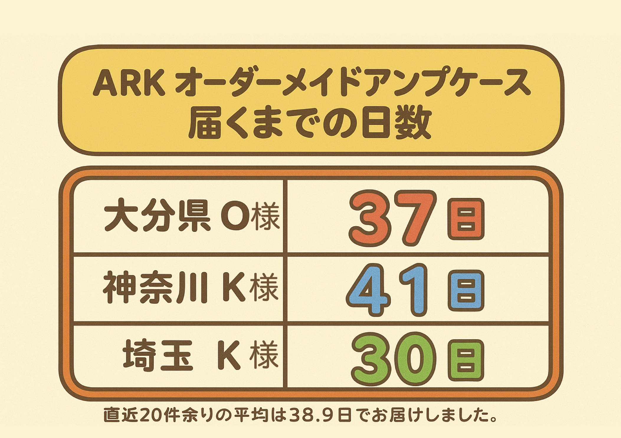 オーダーメイドのツアーケースは既製品とは違い、用途に合わせたサイズや強度で作れるのが大きな魅力です。その一方で「納期が長いのでは?」と不安に感じる方も多いかもしれません。今回の実績から見ると、注文から到着まで1か月強というのは現実的であり、十分に実用的なスケジュールだと言えます。